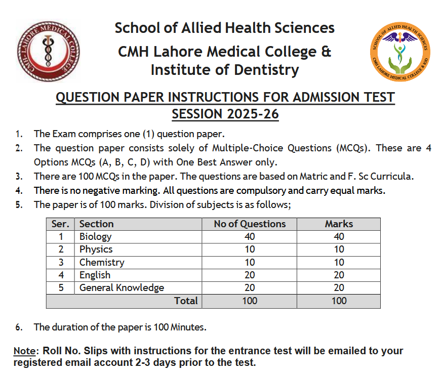 GUIDELINES FOR ADMISSION TEST – NUT, MLT & OPT Programs![]() Click Here! |