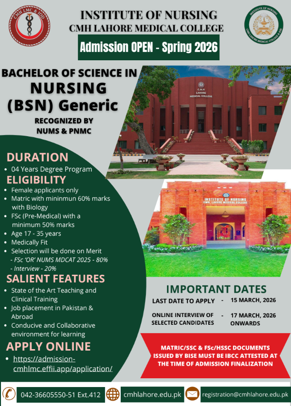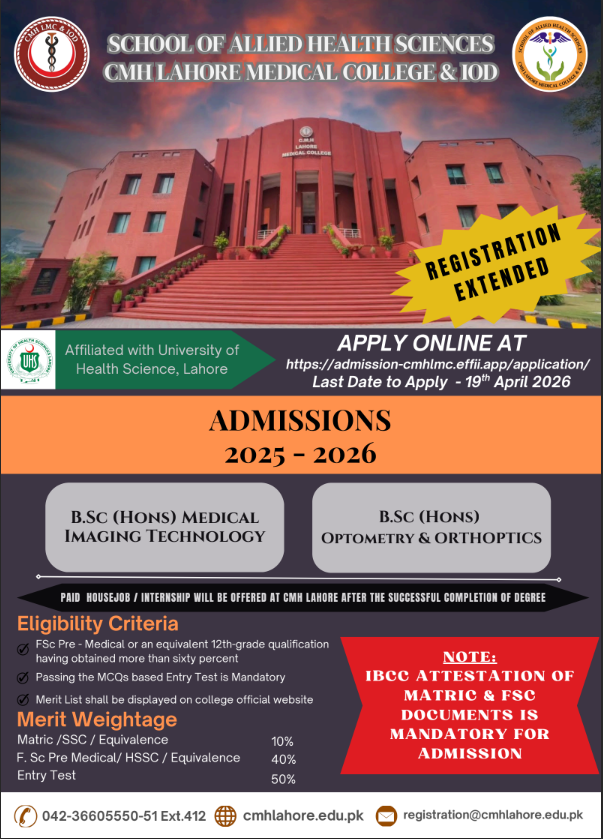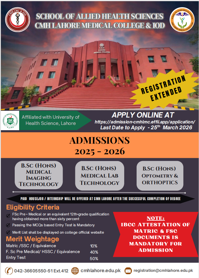 Thank you for visiting our website. I am delighted to welcome you to join MBBS and BDS Programs in our prestigious organization “CMH Lahore Medical College & Institute of Dentistry”. We expect that our students grow into articulate, probing, caring and courteous doctors who are able to express their views cogently and to listen well to others, which reflect not only their professionally sound knowledge but moral & ethical values.