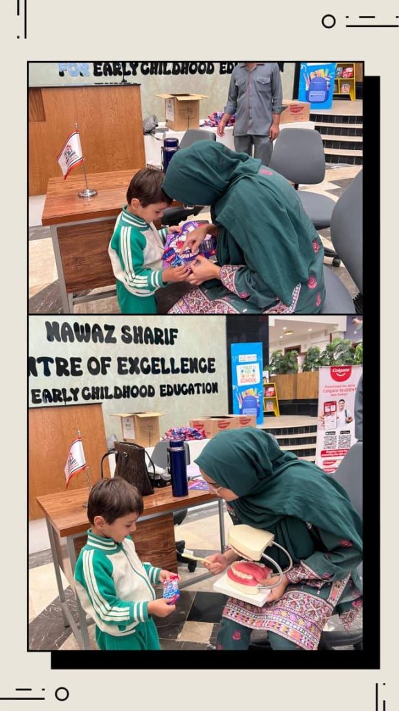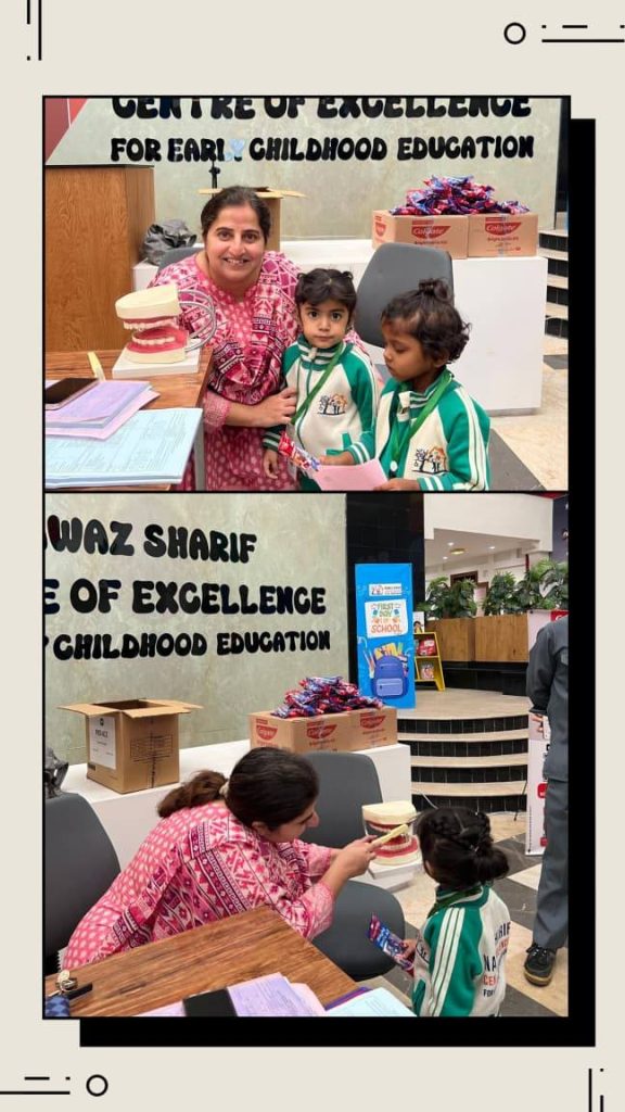 The Department of Community and Preventive Dentistry, CMH Lahore Medical College and Institute of Dentistry, under the supervision of Dr. Asma Shakoor (Head of Department), along with faculty members Dr. Ali Anwaar, Dr. Faiza Chishti, Dr. Javariya Ashraf, Dr. Zainab Noor, and Dr. Yousma Javed, and a team of 12 house officers, successfully conducted its first outreach visit on 29th October 2025 to Nawaz Sharif School of Excellence for Early childhood Education.